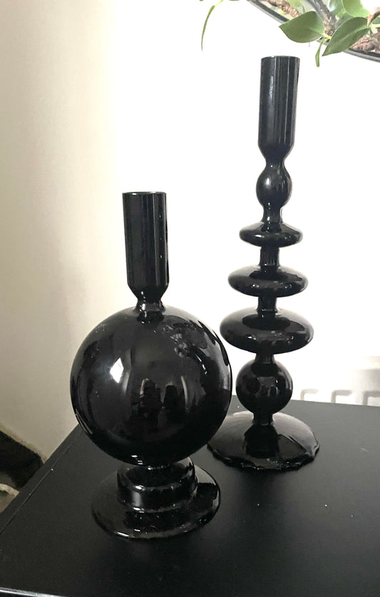 The Tokyo Black Contemporay Glass Candle Stick Holders