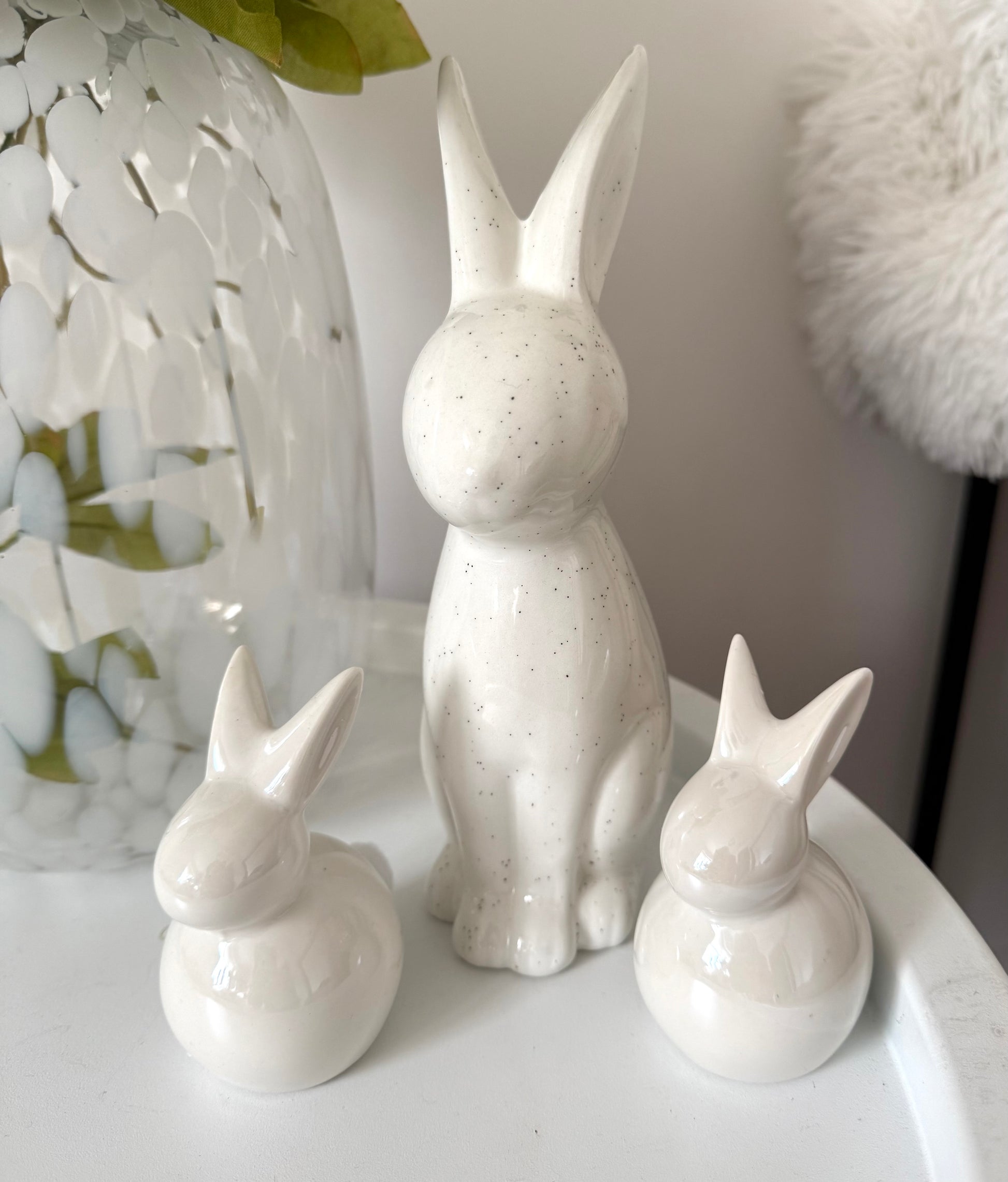 Set of 3 White China Bunnies