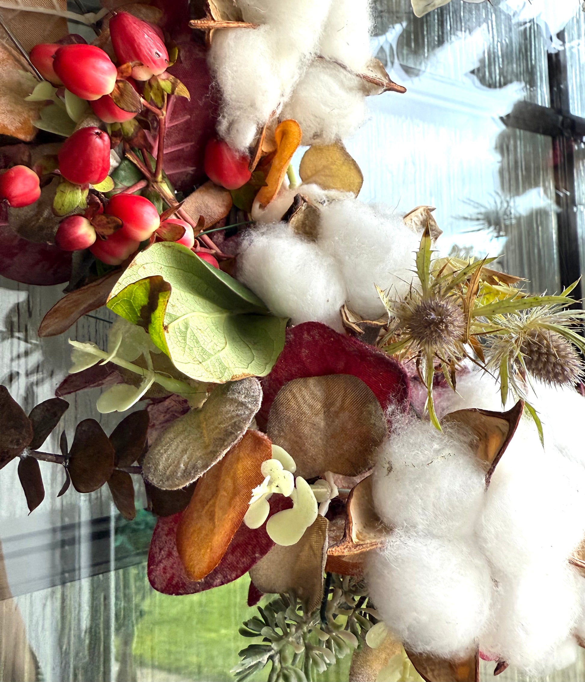 Add some Country Chic vibes to your door With Cotton Boll & Berry Wreath .